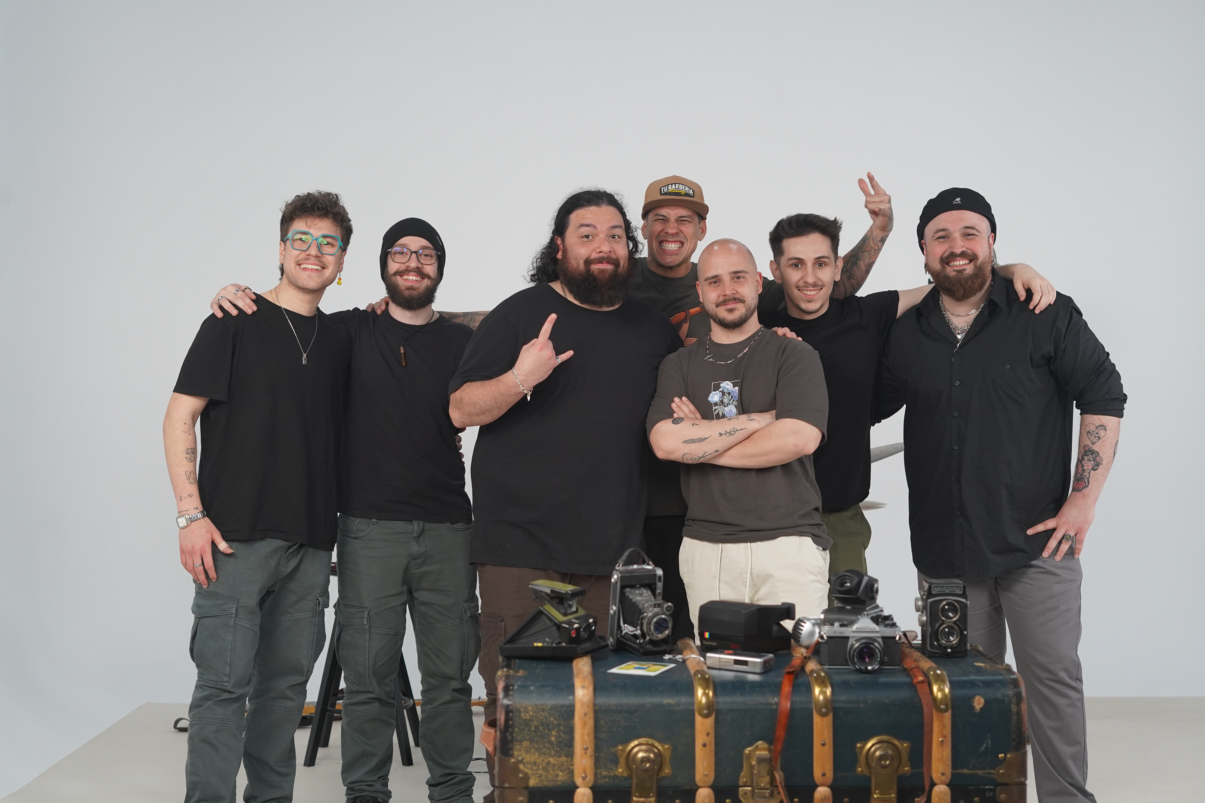 From left to right: Rafa aragon (guitar), Guillermo Sánchez (DRUMS), BURGOS VISUAL (Me), THE GREAT DAVID CULTIVO (AD), JORGE LEBRón (The artist), juan tejerina (bass) and fita blue (guitar)